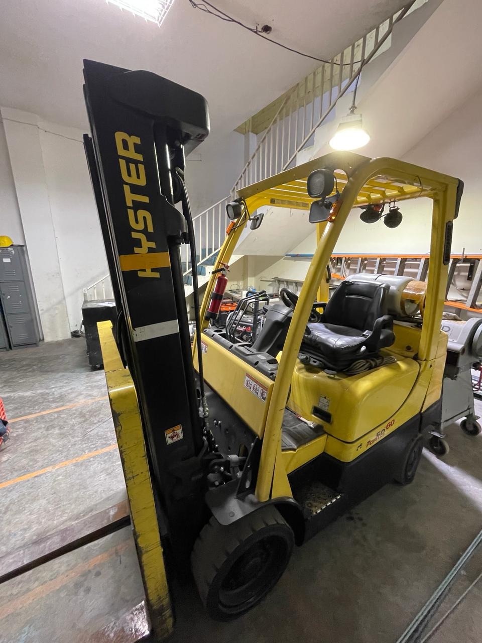 Montacargas marca HYSTER modelo 860FT carga maxima 2.5 toneladas a gas.